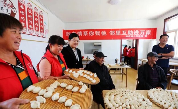 本报讯 为进一步发扬中华优秀传统文化,弘扬尊老爱老的精神,在传统佳节重阳节来临之际,10月10日,温店镇在赵马虎村、双庙杨村孝善食堂开展“包水饺过重阳”活动,为老人们送上节日的祝福和问候。