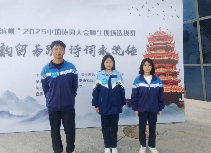 少年自当扶摇上,揽星衔月逐日光。10月19日,滨州市“2025中国诗词大会”师生现场选拔大赛圆满落幕。由16名同学组成的阳信一中代表队凭借深厚的诗词功底与出色的现场表现,一路过关斩将,包揽比赛前三名,为阳信争得了荣誉。