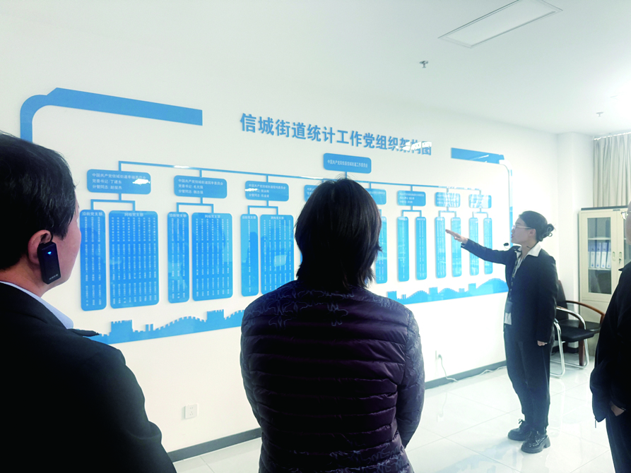 据介绍,“13855”模式中“1”即党建引领,“3”即党建、经委、统计共建设、同部署,建立经委、统计共商协作机制,实现信息共享、资源共用、工作齐抓,与党建激励机制共推进;“8”即8个社区党委(党总支)书记总抓本社区统计工作,并确定一名党员专职分管社区统计工作;“55”即55个覆盖全街道的党支部(37个村党支部、18个沿街党支部),支部书记为统计工作负责人,村委会党支部明确会计为村统计工作具体责任人;沿街党支部配备经过专业培训的公益岗作为沿街统计工作责任人。