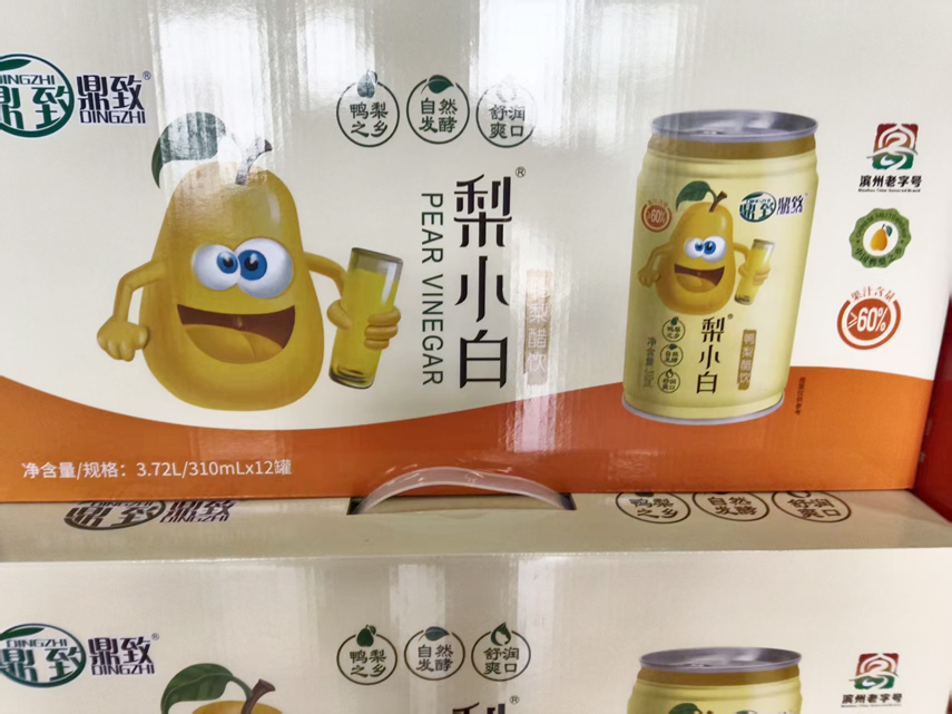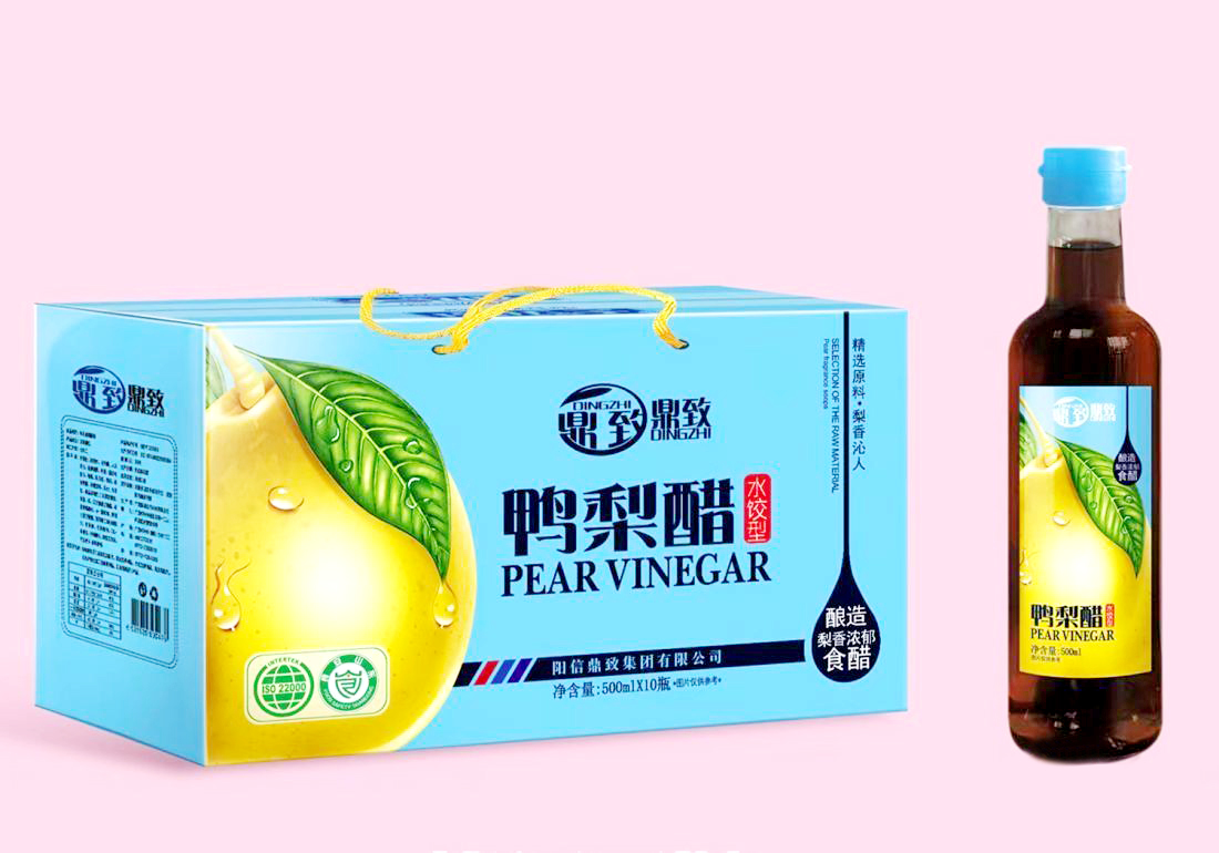 鼎致集团经理、阳信鸭梨醋传承人万建逢告诉记者,公司主打产品阳信鸭梨醋采用阳信鸭梨,通过原料(梨)→挑选除杂→清洗→破碎→加糖液→酒精发酵→压滤→醋酸发酵→过滤→调配→杀菌→冷却→包装→成品等环节制作而成,具有色泽透亮、香味清新、酸中带甜、醋体浓醇的特点。可以软化血管、强心降压、开胃养肝、醒酒消食、改善肠胃功能、增强免疫力、优化肠道有益菌群、消暑解渴、润肺生津和缓解疲劳等。经过十几年的制作和不断改良,阳信鼎致现在生产的主要产品有鸭梨醋、鸭梨凉拌醋、鸭梨饺子醋、富硒醋、养生醋及礼盒系列等。目前,企业正向着产业化、专业化、科技化、正规化、规范化、现代化、集团化的发展方向和建成全国生产经营规模大、向现代化管理先进的一流果醋酿造集团的目标迈进。