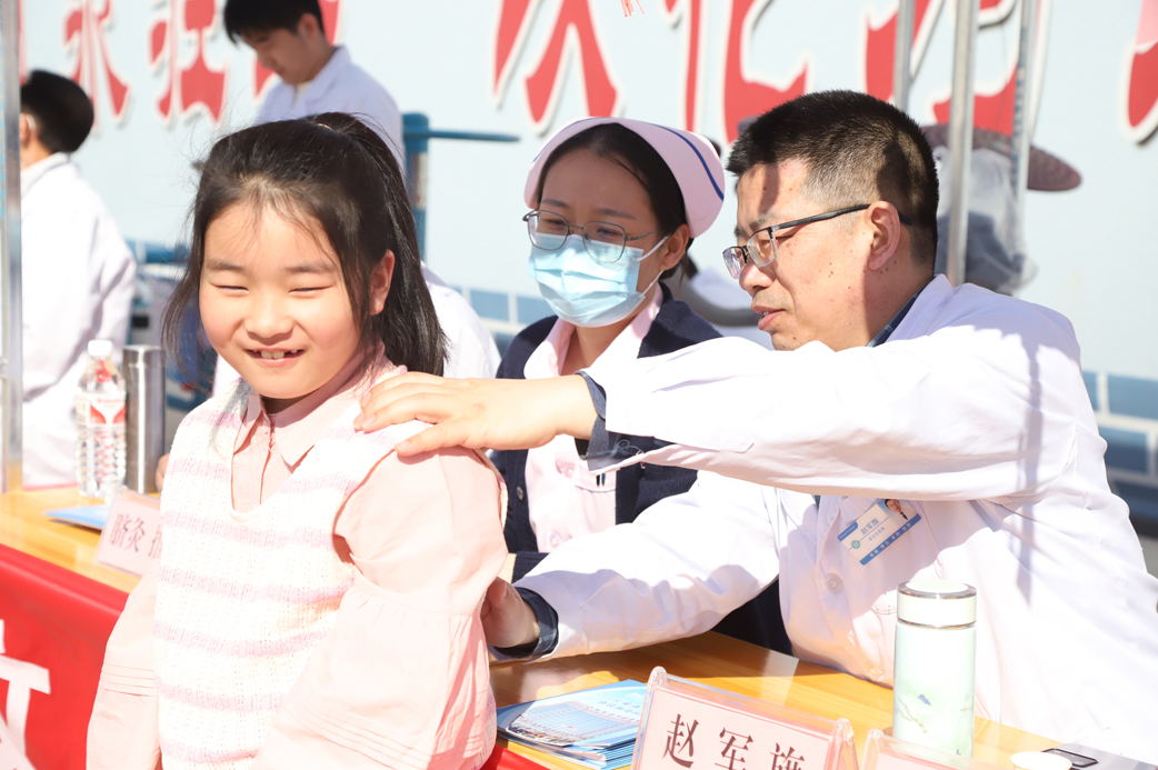小儿推拿区与脊柱侧弯检测区备受关注。家长们带着孩子有序排队,医护人员手法轻柔,一边为孩子们推拿,一边向家长传授日常小儿保健推拿手法,耐心讲解小儿常见疾病的预防与应对知识,助力孩子健康成长。在脊柱侧弯检测区,医护人员仔细地为青少年进行筛查,不少学生和家长神情专注,认真聆听,发现潜在问题,医生便会给出个性化康复指导,全力守护青少年的脊柱健康。