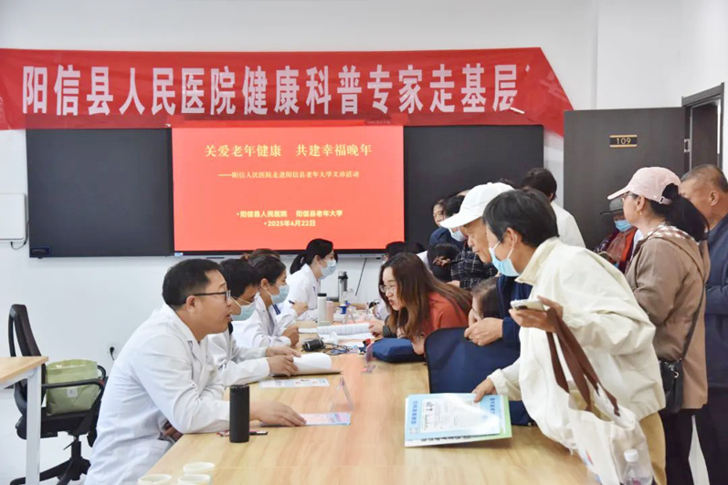 启动仪式结束后,阳信县人民医院普外胸外二科医生菅学强为老年朋友带来了肺结节早诊早治的相关知识讲座。通过多个临床案例,让老年朋友们对肺结节有了更深入的了解,增强了他们对肺结节早诊早治的意识。随后,县人民医院心血管内科、内分泌科、疼痛康复科等科室骨干成员在一楼为老年朋友开展免费义诊活动,受到了老年朋友们的一致好评。