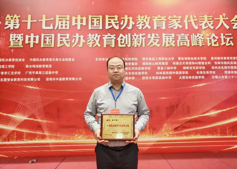 4月26日,第十七届中国民办教育家代表大会暨创新发展高峰论坛在北京隆重召开,本次大会对中国民办教育发展作出杰出贡献的团体和个人进行了隆重的表彰,阳信县水韵梨乡实验学校校长李玉铭获评“中国民办教育十大领军人物”称号,并被推选为新一届中国民办教育促进会副理事长。