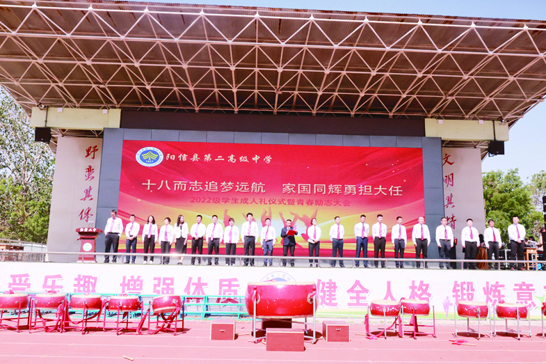 5月17日,阳信县第二高级中学运动场彩旗招展、气氛庄严,“十八而志追梦远航,家国同辉勇担大任”高三学生成人礼仪式暨青春励志活动在此隆重举行。2000余名师生、家长齐聚一堂,共同见证了2022级学子跨越人生重要里程碑的神圣时刻。