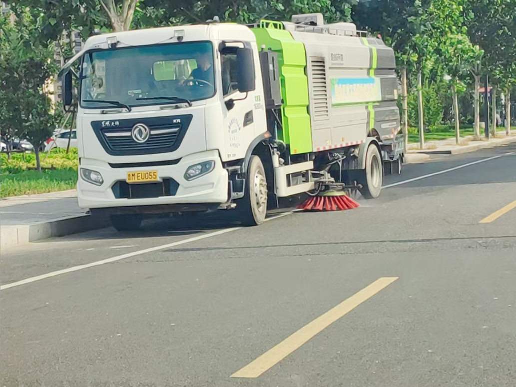 为降低户外劳动强度,调配机械作业力量,启用6辆扫地车、8辆洒水车加大作业力度及作业频次,承担城区主干道清扫和降温任务,让人工保洁聚焦于精细化区域,工作效率有效提升,减轻环卫工人劳动强度。