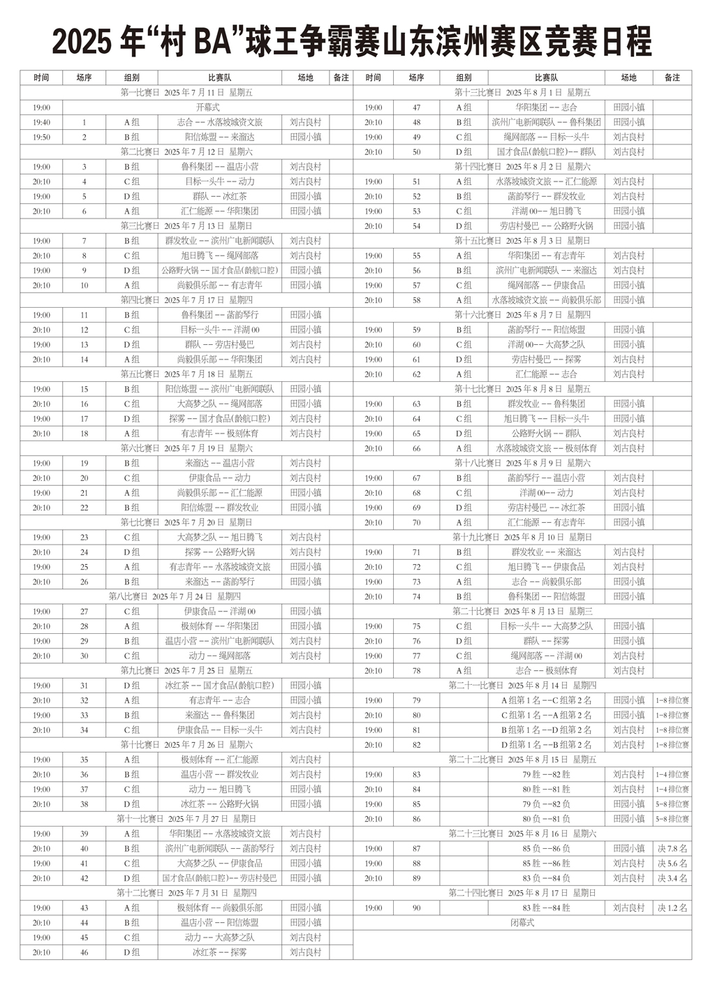 2025年“村BA”球王争霸赛山东滨州赛区竞赛日程