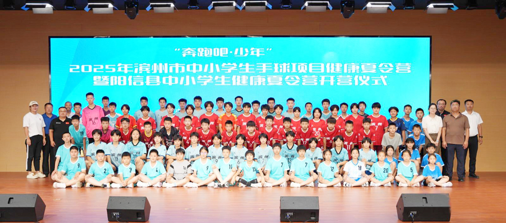 为深入贯彻体教融合战略,全面提升我县及全市中小学生体质健康水平,夯实竞技体育后备人才基础,7月10日上午,“奔跑吧·少年”2025年滨州市中小学生手球项目健康夏令营暨阳信县中小学生健康夏令营在翟王镇中学隆重开营。滨州市教育局、滨州市体育局、阳信县教体局、翟王镇党委政府相关负责人,全体参训运动员、教练员、部分运动员家长参加了开营仪式。