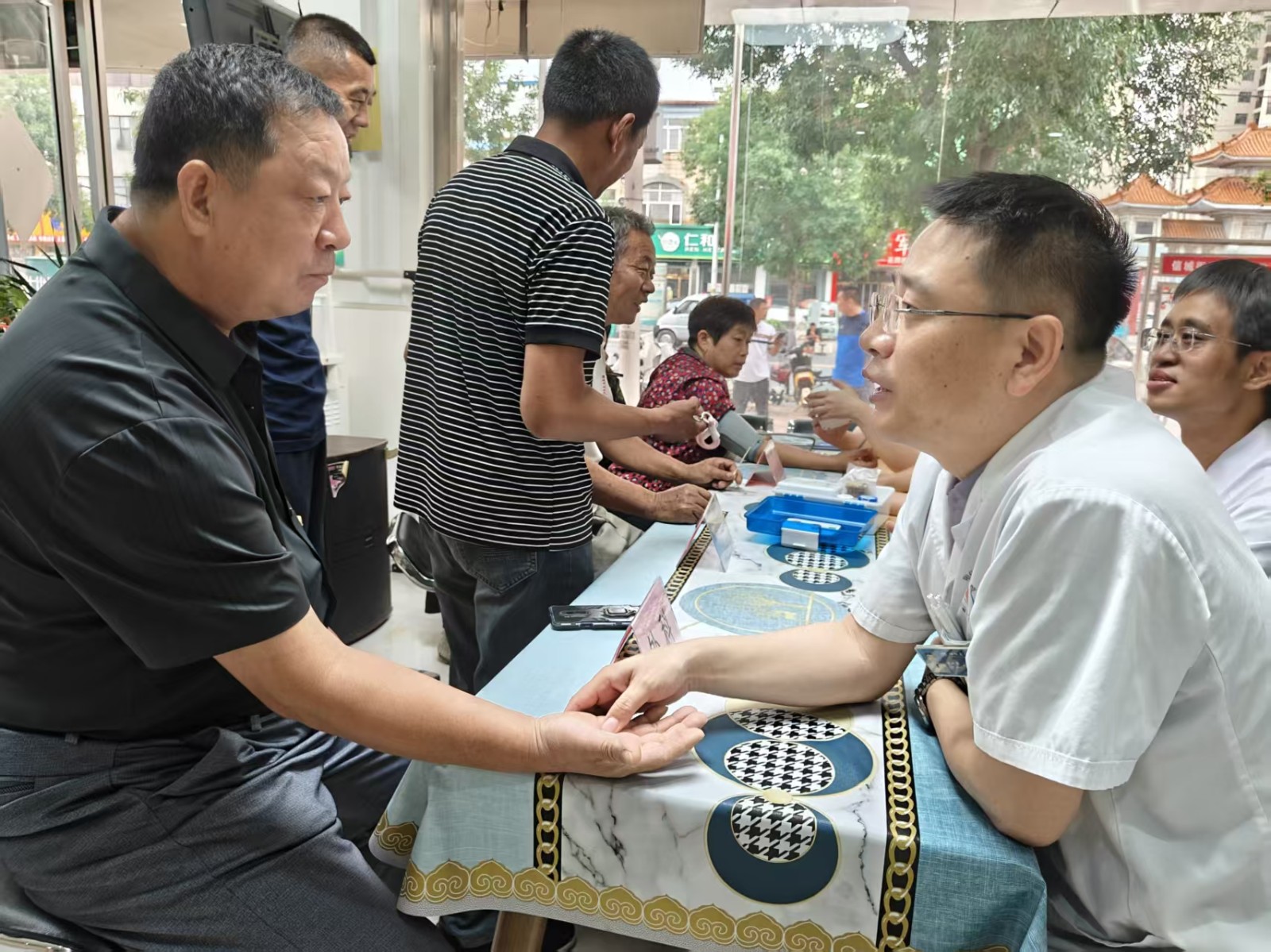 活动当日上午10点,在活动现场,社区已人头攒动,前来咨询、就诊的群众络绎不绝,气氛热烈。“王医生,我这血压最近总不稳定,您帮我看看咋回事?”刚量完血压的居民白大爷焦急地问。心内科主任王国振仔细查看结果后,耐心讲解:“大爷,您这情况跟最近休息不好有关,我给您调整下用药,平时记得清淡饮食。”