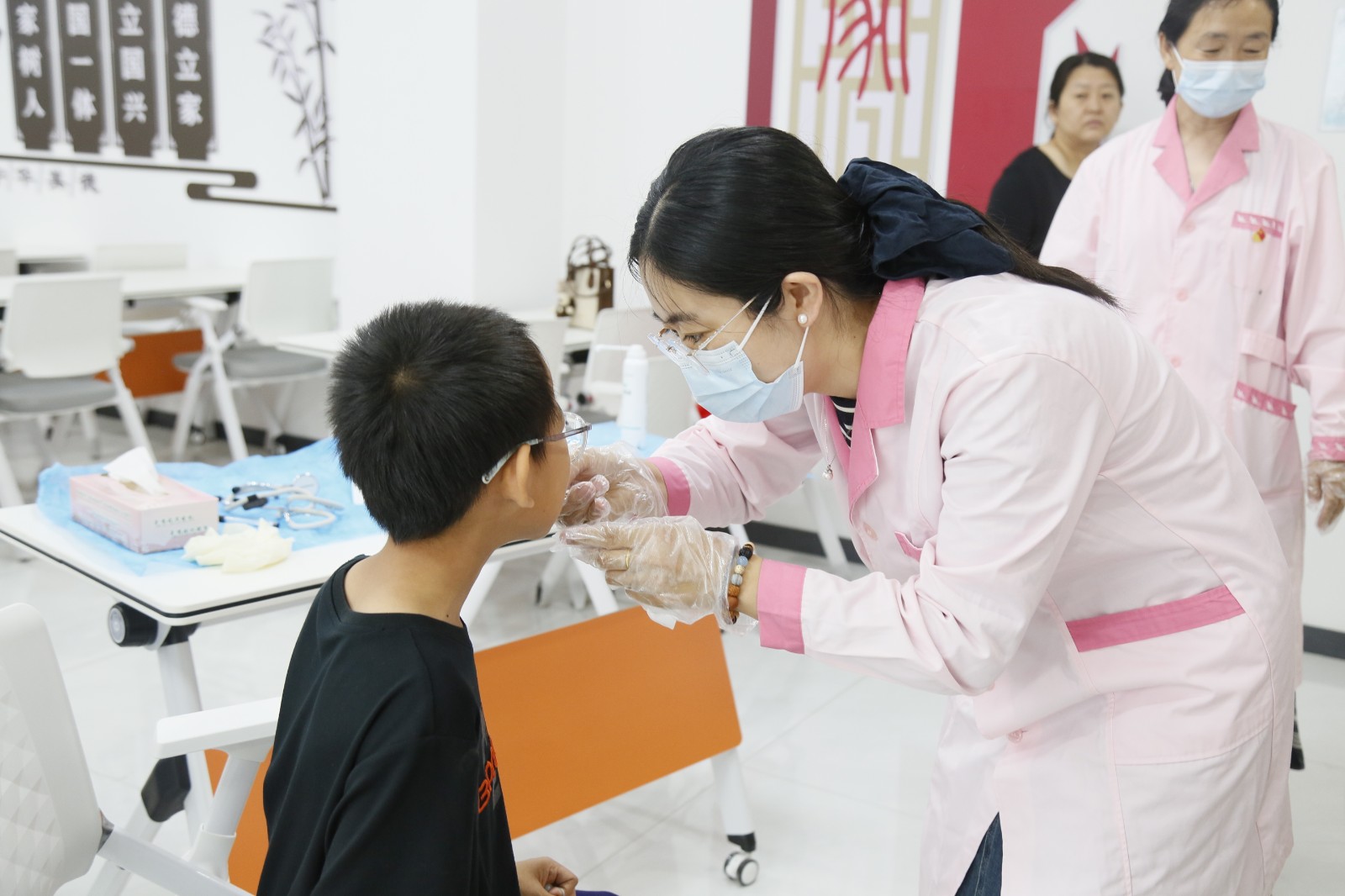 在知识宣讲结束后,医务人员迅速投入到紧张有序的义诊工作中。他们凭借专业的技能和高度的耐心,为每一位小朋友进行了全面、细致的口腔健康检查与内科检查。
