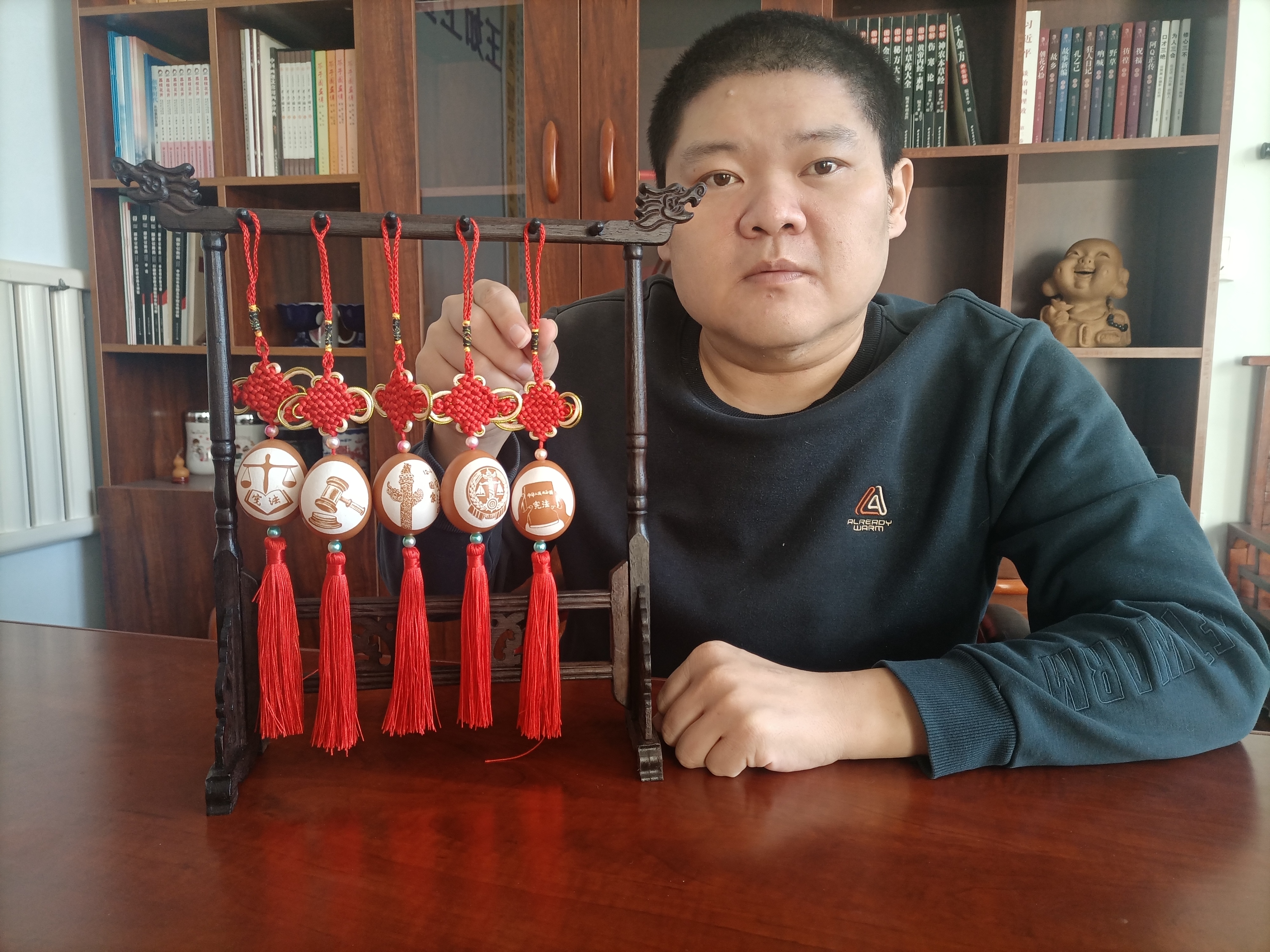 王如卫告诉记者,小时候由于意外造成下肢残疾,但他没有放弃对梦想的追求,凭借艺术天赋和顽强的毅力,刻苦自学和四处拜师,学会了蛋雕、国画、葫芦雕刻烙画、雕塑、素描、动漫,还自学了中医。在得知自己终身要靠轮椅生活时,王如卫没有哭闹,他说父母因为自己已经操碎了心,自己不能让他们再担心。经过漫长的治疗和自己刻苦的康复锻炼,在最开始卧床需要几个人照顾到后来拄着拐可以行走百十米,每一次成长的背后洒满泪和汗。