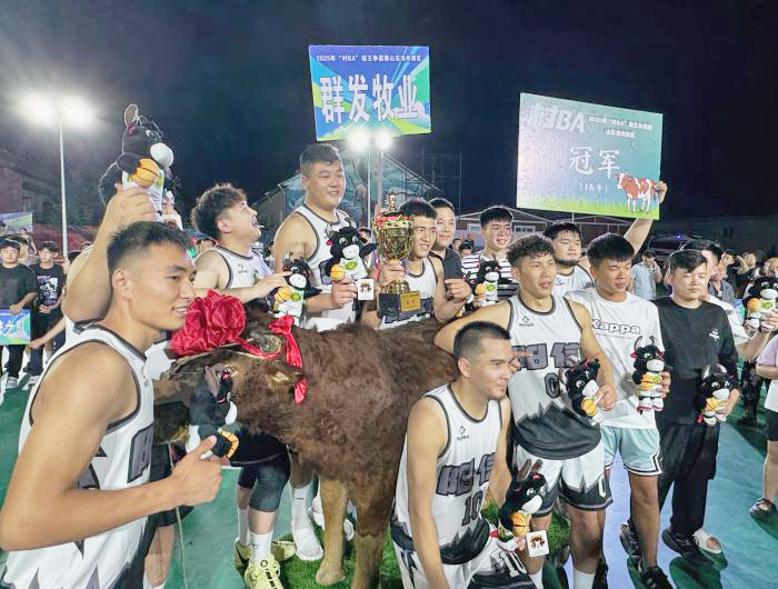 近日,流坡坞青年组队的群发牧业队在2025“村BA”球王争霸赛·山东滨州赛区中获得冠军,并把价值1万元的冠军牛,捐给母校流坡坞镇中心小学和阳信县一中,他们也将代表滨州市参加全省比赛。 (翟成新 孙倩 宋敏)