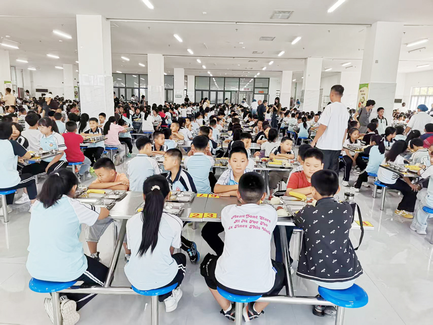 本报讯 在新学期开学之际,劳店镇中心小学全体师生共同迎来了一件喜事——学校新建餐厅正式投入使用。伴随着孩子们的欢声笑语,千余名师生齐聚焕然一新的餐厅,共同品尝 “暖心第一餐”,开启校园生活的美好新篇章。