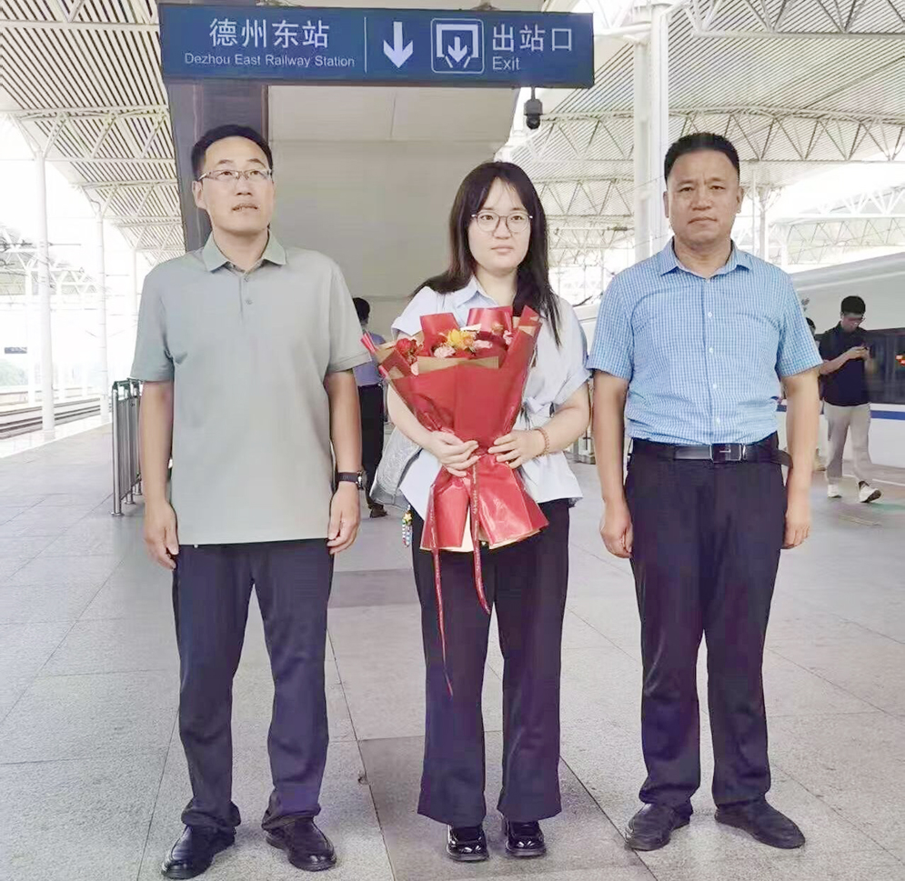 9月4日上午,县退役军人事务局党组书记、局长杨洪彬一行3人,专程赶赴德州东站,迎接从北京参加九三阅兵观礼归来的姚烁,祝贺她载誉归来。
