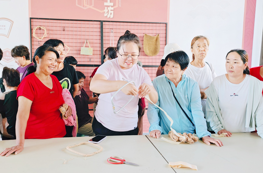 李大姐口中所说的“乐融共富手工之家”是首个镇级共富工坊,它的成立为镇域内老年群体、留守妇女群体、残疾人群体带来了福音,开班培训三天累计学员1000余人,覆盖镇域73个自然村,解决了各村老年人“挣钱无门”的难题。与此同时,“乐融共富之家”充分发挥“共富枢纽”作用,大力扶持发展村集体手工微工坊,不少村干部担起“运输员”的重任,为村里老年人送货、发货,把挣钱的机会送到群众家门口。共富之家不但把零散的“小手工”拧成了暖心的“大产业”,更为镇域各类手工活提供培训、宣传平台,为群众提供各村手工活分布信息,让其有更多可选择的机会。