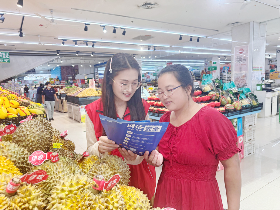 活动当天,志愿者们提前精心准备了涵盖网络诈骗防范、个人信息保护、支付安全、虚假信息辨别等内容的宣传单页。在商超入口、商户经营区域等人员流动较大的地点,志愿者们主动上前与过往群众、商户工作人员交流,用通俗易懂的语言讲解常见的网络安全风险。针对商户关心的线上收款安全、客户信息保护等问题,志愿者结合近期典型案例,详细介绍了防范钓鱼链接、避免账号密码泄露、识别虚假订单诈骗等实用技巧;对于老年群众,志愿者重点讲解了如何辨别冒充子女借款、虚假保健品推销等针对老年人的网络诈骗手段,手把手指导大家开启手机安全防护功能,提醒大家不随意点击陌生链接、不向陌生人透露银行卡密码及验证码。