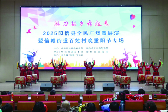 秋阳暖照梨乡,舞姿点燃热情。10月25日,2025阳信县第五届“魅力梨乡舞起来”全民广场舞展演暨信城街道百姓村晚重阳节专场活动圆满举办。来自全县各乡镇(街道)的17支广场舞队伍齐聚舞台,以舞抒情、以韵传情,更有全员收获荣誉的暖心时刻,为阳信县“文化惠民”写下生动注脚。