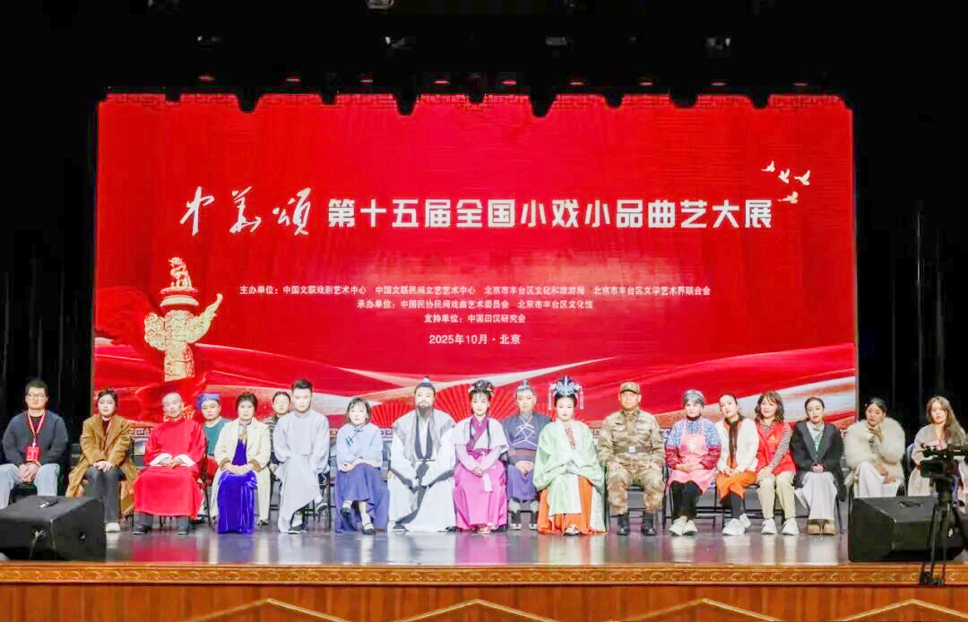 “中华颂”全国小戏小品曲艺大展截至今年已成功举办十五届,成为国内极具影响力的戏剧曲艺艺术品牌。本届大展以纪念中国人民抗日战争暨世界反法西斯战争胜利80周年为背景,汇聚了十七个省、自治区、直辖市的多元剧种,从全国326件作品中遴选了64个优秀参展作品,既有京剧、婺剧等经典戏曲,也涵盖评书、大鼓等特色曲艺,阳信西河大鼓则在其中展示了山东传统曲艺的风采。