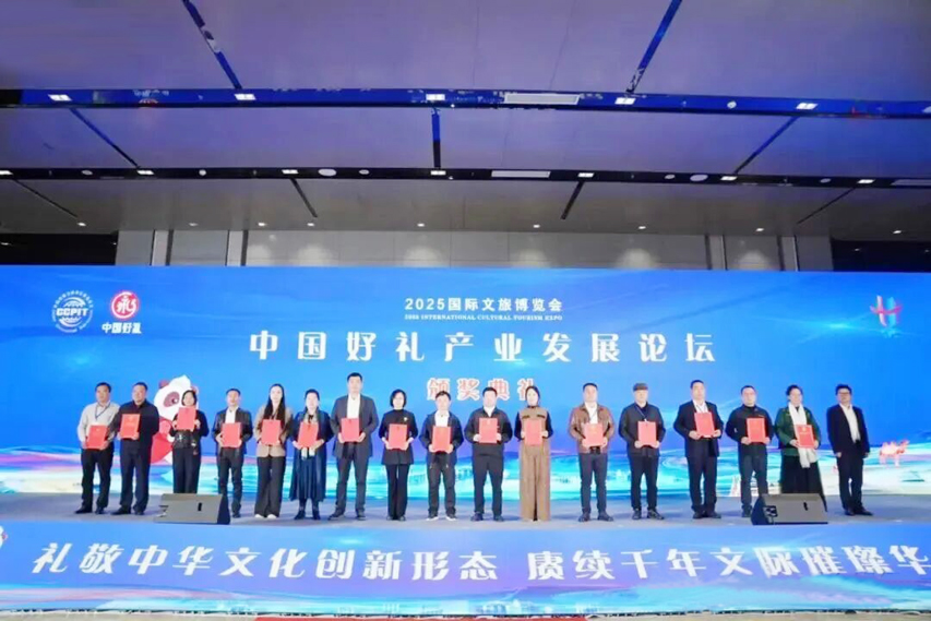 11月7—9日,2025国际文旅博览会在合肥滨湖国际会展中心举办,来自中国鸭梨之乡阳信县滨州市奇雕木业有限公司推送的中华同心锁、王如卫文化艺术品工作室选送的蛋雕两件工艺精品亮相2025国际文旅博览会,并领取了《2025-2026年度中国好礼产业促进计划推荐产品》证书,引起人们关注。