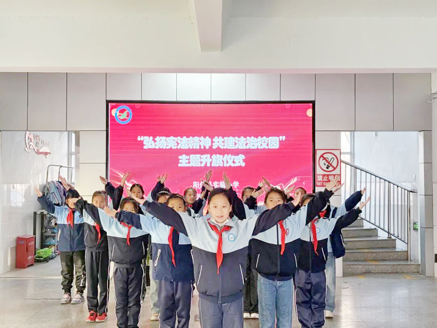 在宪法日来临之际,12月1日,县实验小学举行“弘扬宪法精神 共建法治校园”主题升旗仪式。