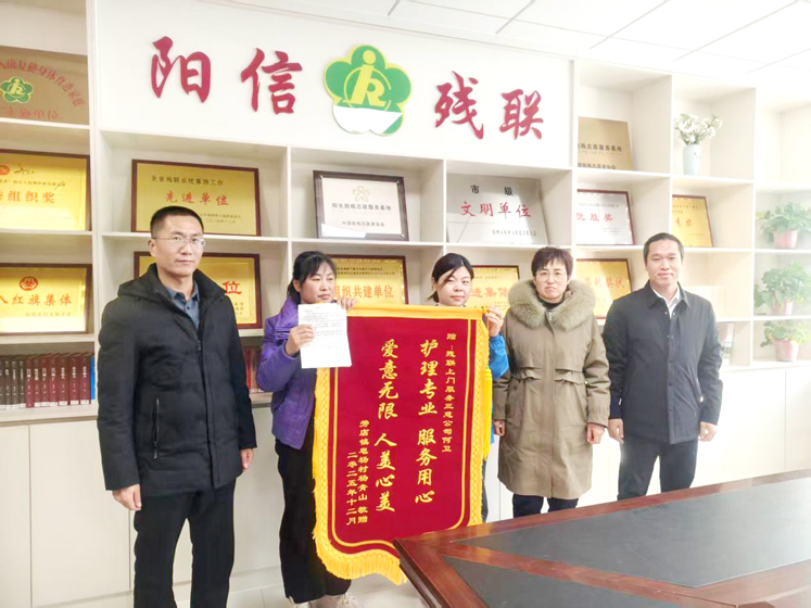 本报讯 12月3日,劳店镇皂杨村村民杨青山的家属,将一面饱含深情的锦旗与一封真挚的感谢信送到县残联,再三致谢这项让家庭重燃希望的重度肢体残疾人居家康复服务——曾因意外摔伤陷入植物人状态一年的杨青山,在专业居家康复护理下,已从毫无知觉逐渐恢复对外界的感知,这一可喜变化让全家热泪盈眶。