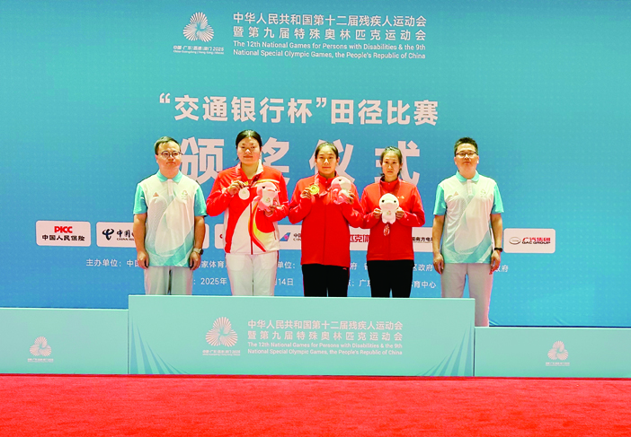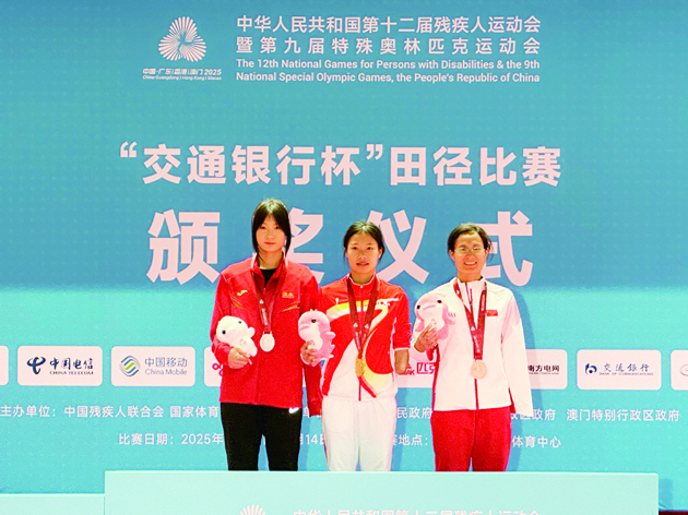 12月9日,在全国第十二届残运会暨第九届特奥会田径赛场上,一位刚转项仅一年的17岁少女吸引了众人目光。来自滨州的马明涛的队员徐梦涵,在女子1500米比赛中以打破全国纪录的成绩获得第四名,用奔跑诠释了坚韧与突破的力量。同时,她还获得800米第六名。在12月9号残运会女子T47级400米决赛马明涛队员贾程香摘铜,同时获得200米、100米第三名的好成绩。12月11日,第十二届全国残疾人运动会暨第九届特殊奥林匹克运动会田径女子跳远T47级决赛在广州举行,马明涛队员陈金夺得冠军并打破全国纪录。12月11号,在女子铁饼比赛中,马明涛队员王吉丽获得女子T12级第二名的好成绩,同时还获得铅球第二名好成绩。队员唐瑜桐,12月13日,获得全国第十二届残疾人运动会暨第九届特殊奥林匹克运动会女子跳远T12级冠军。