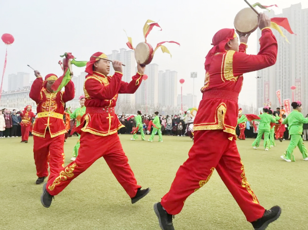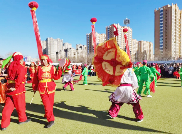 12月19日-21日,牛气冲天·山东牛肉美食争霸赛暨滨州市冬季黄河大集活动在我县举办。洋湖乡共派出5支秧歌队近300余名队员助力本次活动演出。