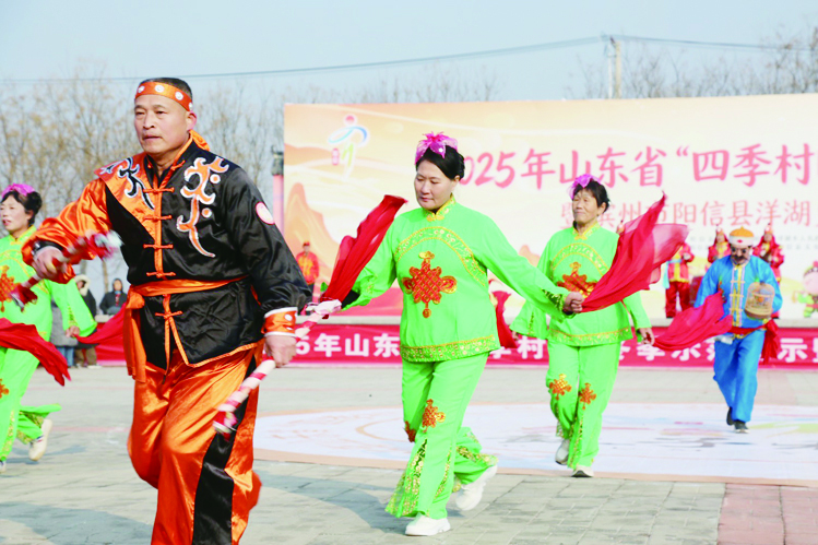 2025年12月30日,2025年山东省“四季村晚”冬季示范展示暨洋湖乡庙五庄村村晚活动在洋湖乡庙五庄村秧歌人家大舞台举办,来自全乡秧歌爱好者们近300余人齐聚庙五庄村,以铿锵欢快的秧歌舞步,表达了对新的一年的喜悦与期待。