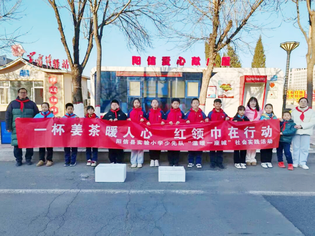 寒冬凛冽,温情涌动。为深入推进思政教育走深走实、走出课堂,引导少先队员们懂得感恩、学会奉献,厚植责任意识与家国情怀。近日,阳信县实验小学少先队以实践为载体,开展了“一杯姜茶暖人心 红领巾在行动”、“温暖一座城”社会实践活动。