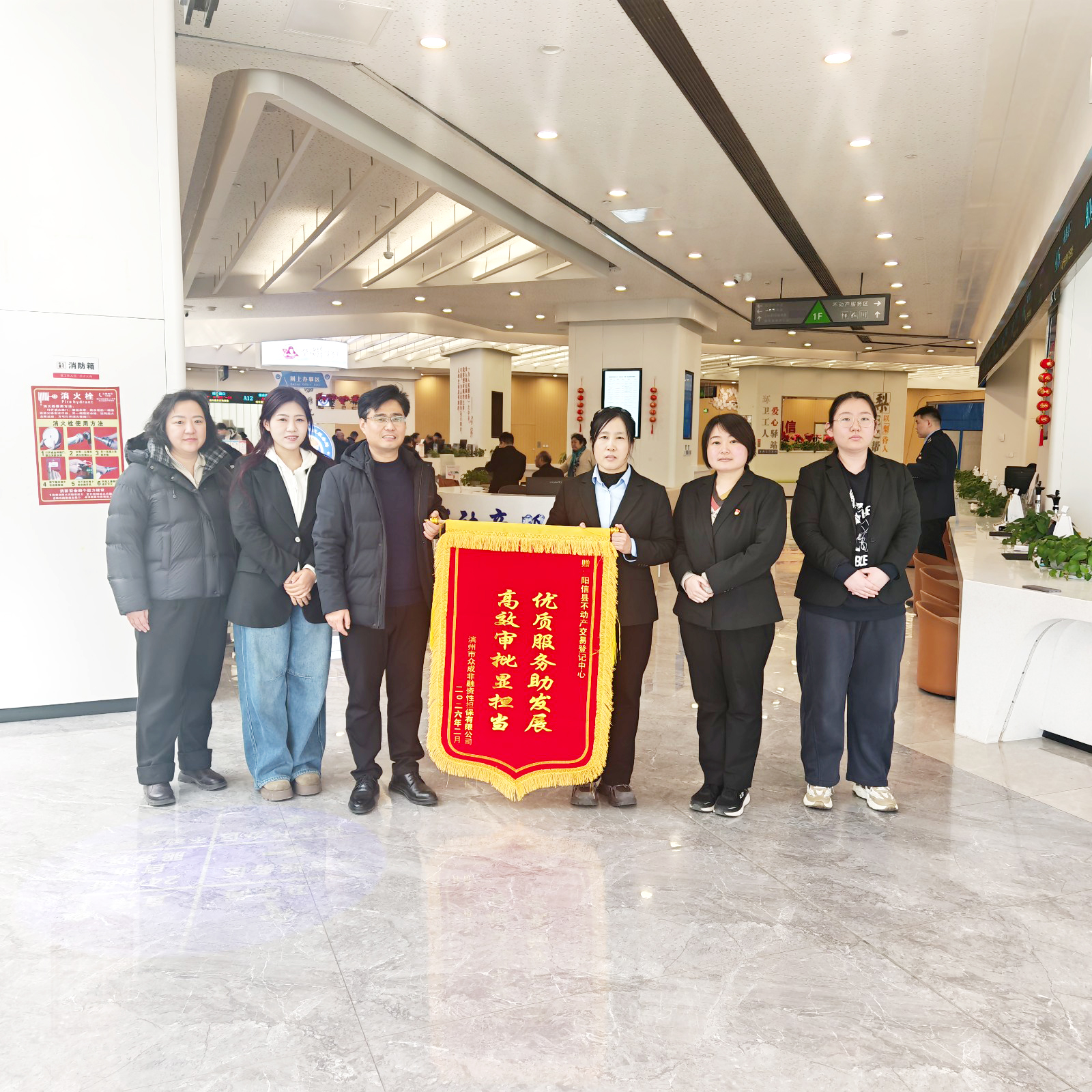 本报讯 近日,滨州市某融资企业将一面印着“优质服务助发展,高效审批显担当”的锦旗送到了县不动产交易登记中心,表达对中心优质高效服务的由衷感谢。县不动产交易登记中心以法治化、便利化改革举措,“减环节、压时限、降成本”为企业打通资产变现“中梗阻”,实现资金回笼需求,让闲置土地资产重焕价值。