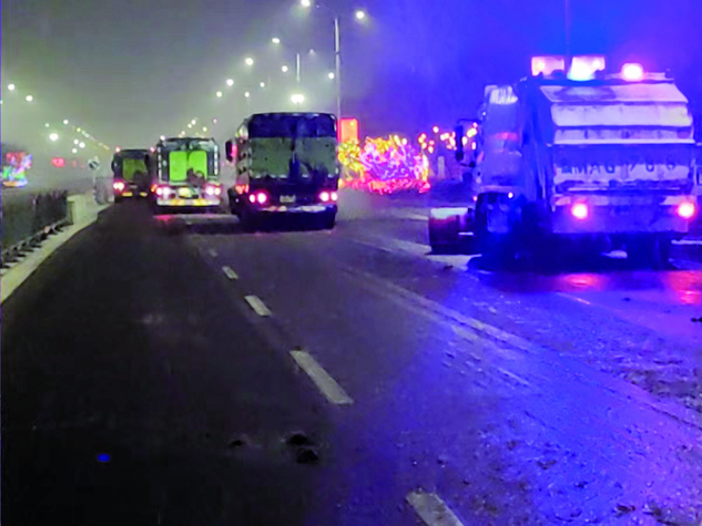 针对此次降雪天气,阳信采取抛洒融雪剂、机械清除、人工清扫等多种措施,按照“先主干道、后次干道”的原则,分段突击、多点突破,对城区主次干道等重点部位全力以赴铲除积雪。同时,组织人员对城区各公园广场进出园道路及重点场域清扫,对阳城六路、河东一路、河东三路等重点路段进行清理,为市民出行开辟安全通道,最大限度减轻积雪冰冻对行车、行人安全造成的危害。